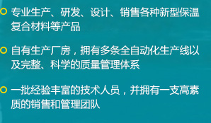 公司是一家瞄準國際、國內市場,集科、工、貿于一體的綜合性公司,擁有各類先進的設備100余臺(套),公司自主研發了新型保溫材料及彩鋼復合保溫板材連續生產工藝,建成了機上一次成型彩鋼復合保溫板材的生產線...